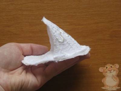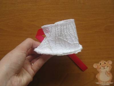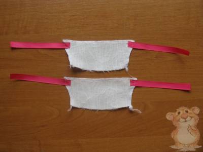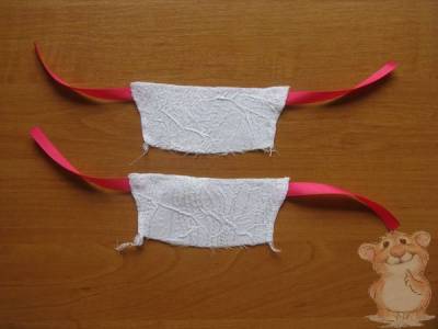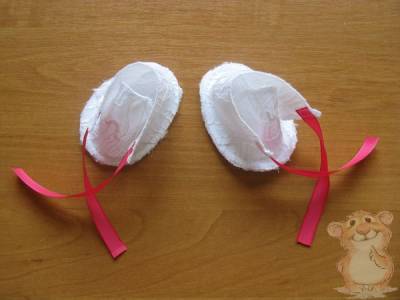 К боковым срезам задника на швейной машине пришиваем завязки из атласной ленты, длина завязок 15 см.