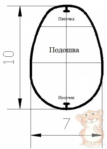 Соединяем между собой две детали подошвы, продублированная сторона внутри, ширина строчки 0,3-0,5 см.
