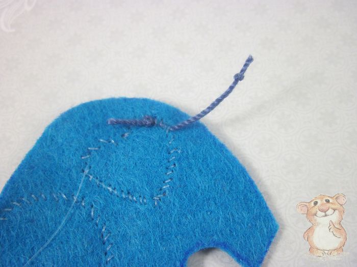 Из небольшой нитки тонкой пряжи делаем хвостик и во время пришивания сердечка закрепляем его с изнаночной стороны.