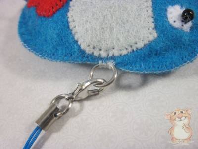 Теперь пришиваем металлическое колечко сверху и пристегиваем за карабинчик к нему подвеску.