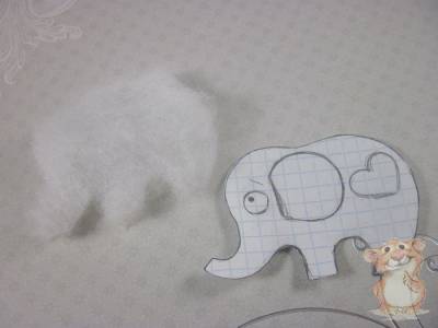 По контуру выкройки вырезаем из наполнителя заготовку для набивки брелка.