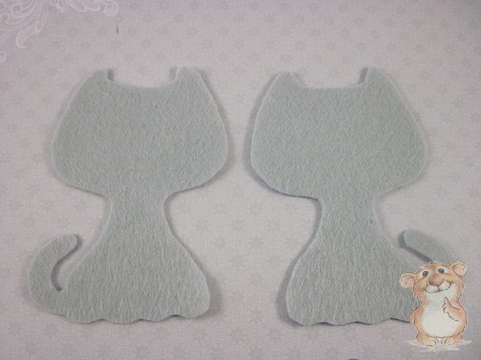 Тело кошечки будет серого цвета, а поэтому выкраиваем 2 детали на сером фетре.