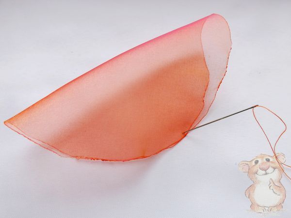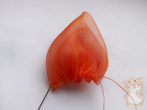 7. По краю опаленной кромки собираю лепесток на нить.