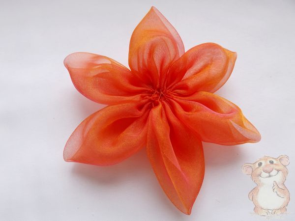5. Теперь приступаю к изготовлению большого цветка. Каждый лепесток складываю пополам.
