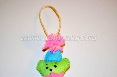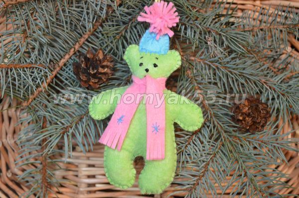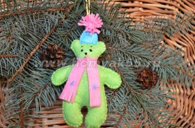 Елочная игрушка мишутка из фетра – готова!