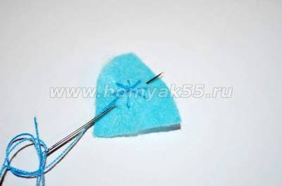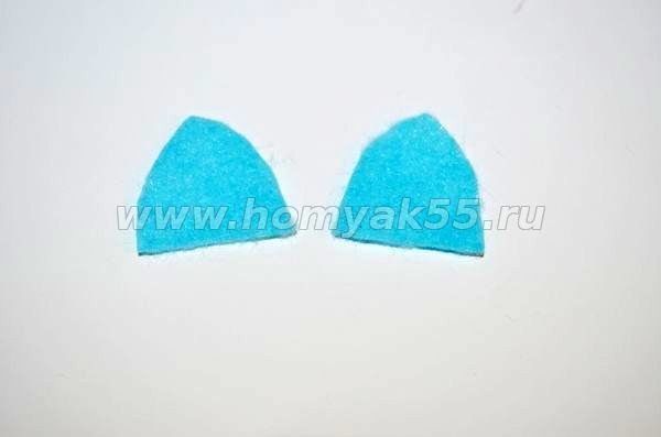 Шаг 9. Дальше возьмем фетр голубого цвета и выкроим из него две одинаковые детали шапочки.