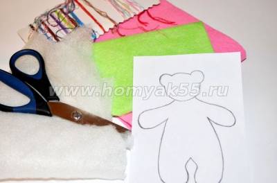 Для того чтобы сшить необычную елочную игрушку из фетра в виде забавного медвежонка, нам потребуется: