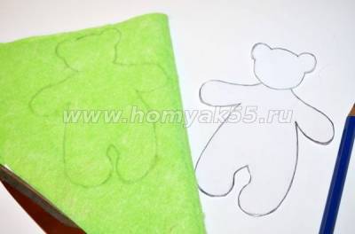 Шаг 2. Вырезаем шаблон из бумаги и переносим его на сложенный вдвое лоскут фетра при помощи простого карандаша.