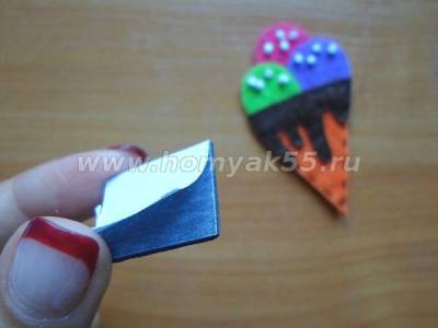 Последний этап – прикрепление магнита. Отлепляем от магнитной ленты пленку и приклеиваем его к обратной стороне мороженого.