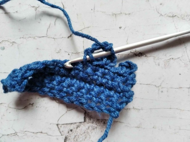 Вводим крючок в основание воздушной цепочки так, чтобы крючок вошел под 2 петельки.