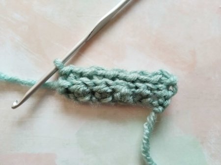 Вязание разворачиваем и делаем 1 ВП. Теперь вяжем ряд, который будем повторять далее на протяжении всего вязания.