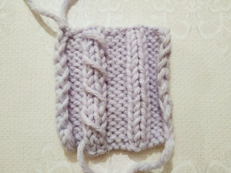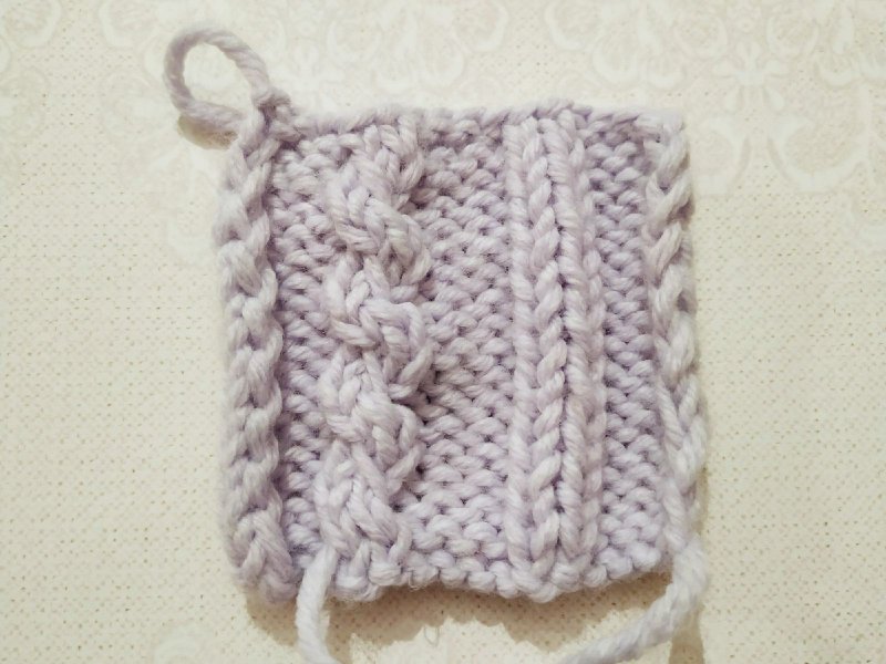 Коса должна состоять из 2 лицевых петель. Поэтому провязываются дорожки из 2 лицевых, между дорожками может быть любой узор (хорошо смотрится изнаночная гладь).