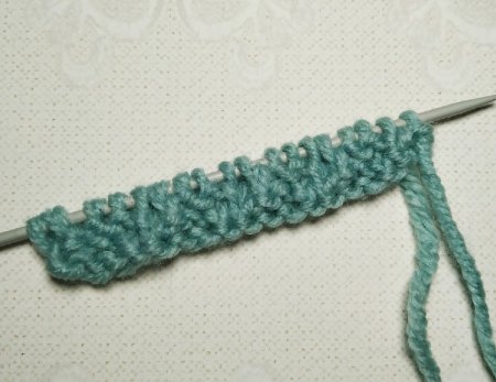 Снимаем кромочную. И дальше чередуем 2 лицевых петли и 2 изнаночных. В конце вяжем кромочную.