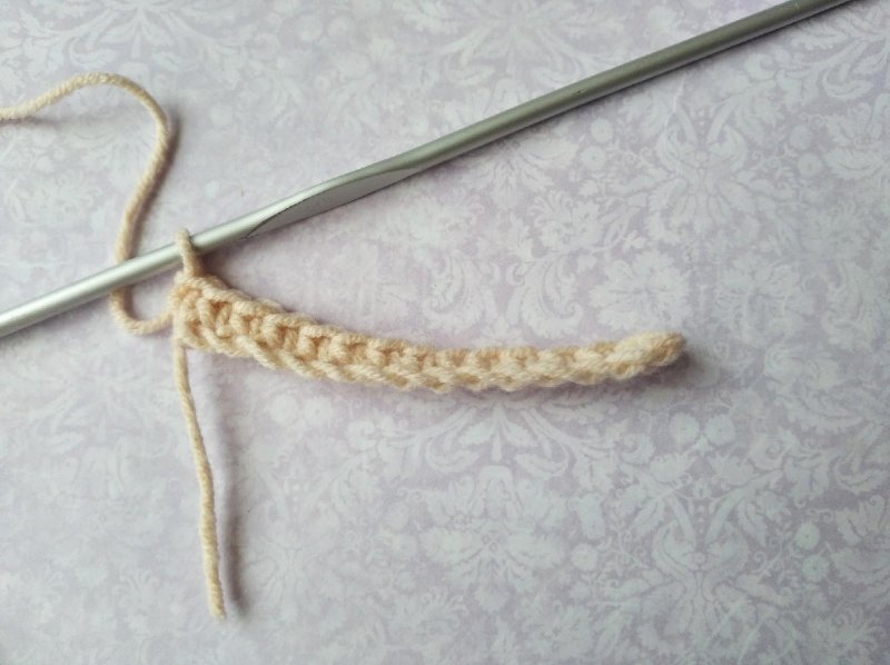 Первый ряд раппорта провязывается обычными столбиками без накида.