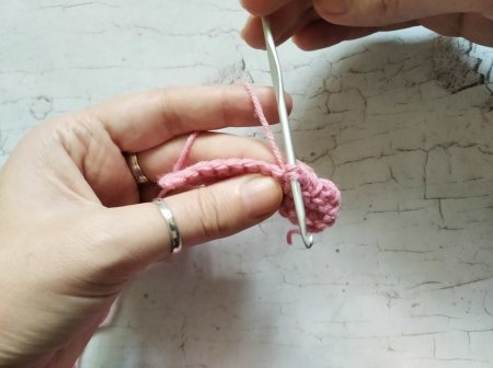 И рабочая нить вытягивается. Но не провязывается. После этого крючком нужно повернуть против часовой стрелки.