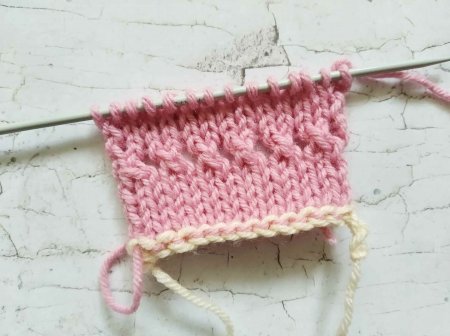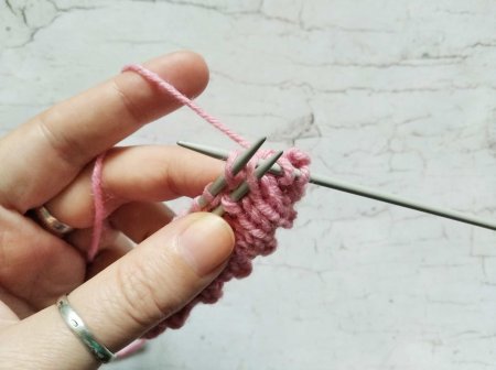 В изнаночном ряду провяжите все петли и накиды изнаночными петельками.