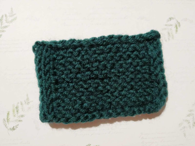На спицы набираем несколько петель для образца. Затем провязываем ряд выбранным рисунком. В данном случае это простой и всем известный узор – платочная вязка. То есть, в данном случае провязываем все петли лицевой, включая кромочные.