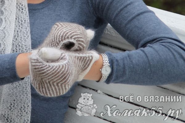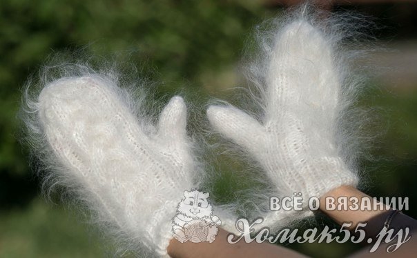 Особо выразительно выглядят белоснежные варежки из пуха, а ажурная вязка и оригинальный рисунок добавляют им элегантности.