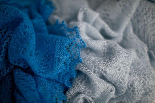 Узор пуховых шалей состоит только из лицевых петель. В результате получается платочная вязка. В процессе носки изделие «пушится», и плетение становится практически незаметным.