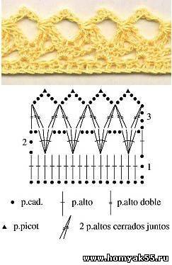 Кайму можно связать отдельно и затем пришить к изделию, а можно связать её сразу по краю изделия. Вязаная крючком кайма может быть использована для оформления штор, носовых платков, полотенец, закладок, юбок, платьев и многого другого.