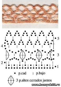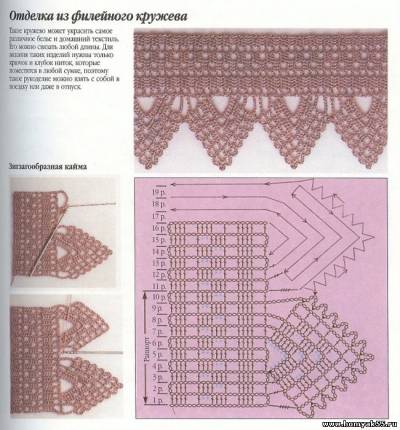 Также вязаная кружевная кайма с успехом украсит деревянные полочки или подоконники. Особенно хорошо смотрится широкая вязаная кайма с продетой сатиновой лентой и свисающей бахромой. Для вязания Вы можете подобрать пряжу любого цвета.