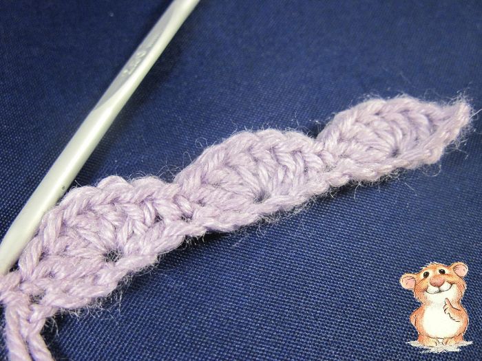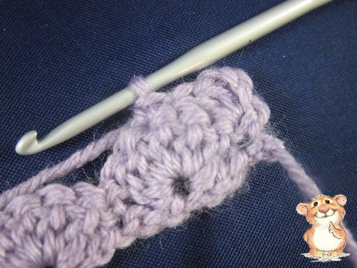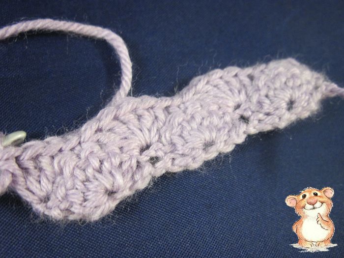 Далее провязываем несколько ракушек. В конце ряда необходимо провязать неполную ракушку, состоящую лишь из 3 столбиков.
