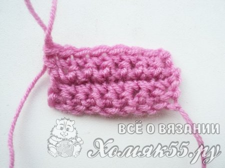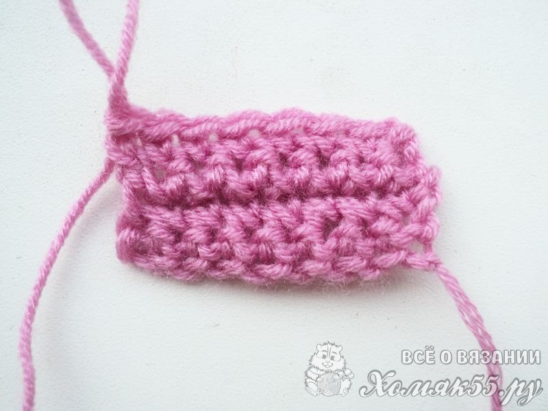 Для вязания нового ряда необходимо сделать одну воздушную петельку. Разворачиваем вязание. Далее будем вязать в обратную сторону. И вяжем новые столбики без накида в каждую петельку. Вяжем необходимое количество рядочков. Ряды получаются невысокими, но достаточно плотными.