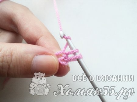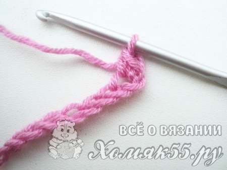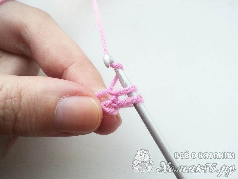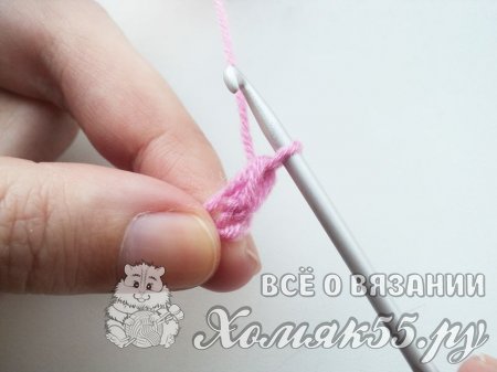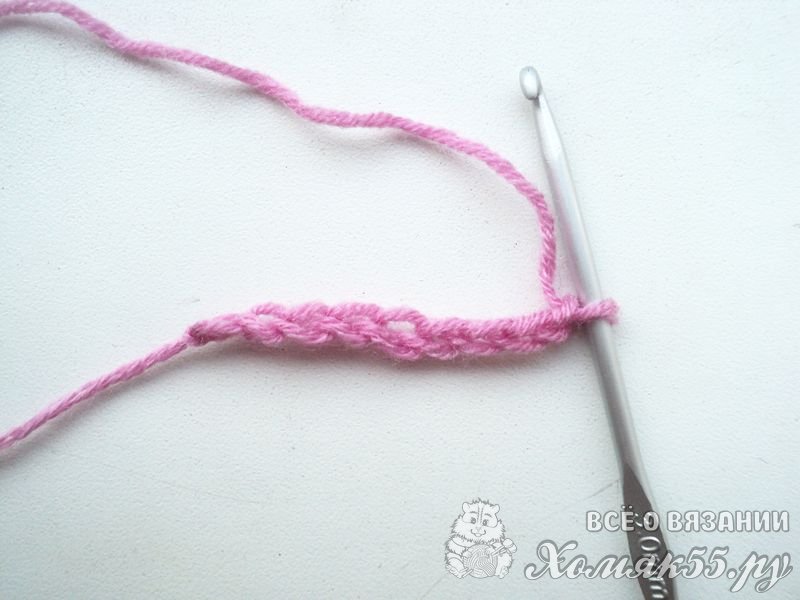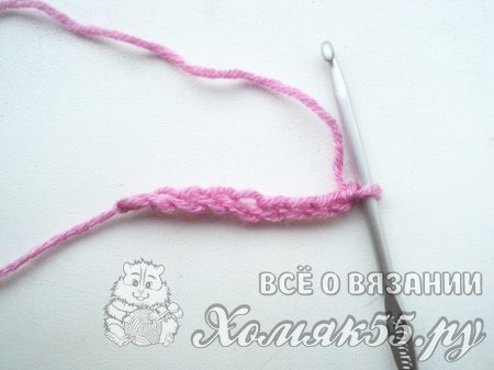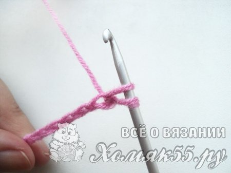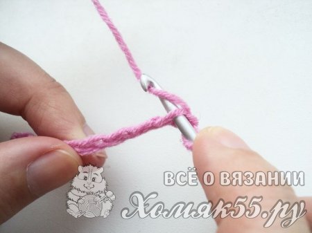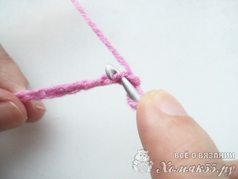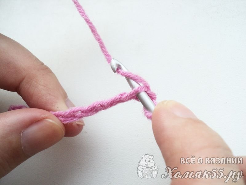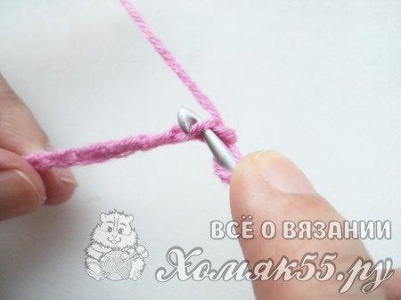 Вводим крючок в первую петельку от крючка. Из нее мы начнем вязать первый столбик без накида.