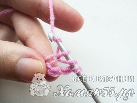 Далее, ничего не провязывая, мы снова захватываем рабочую нитку.