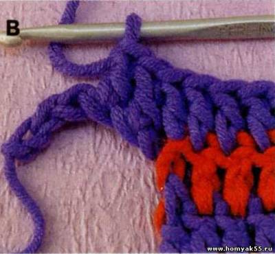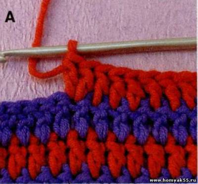 1. Для прибавления одной петли в какой-либо точке ряда или круга , провяжите две петли, вводя крючок в одну и ту же петлю предыдущего ряда или круга 2 раза (А).Если необходимо прибавить большее количество петель, то сделать это можно тем же путём: просто провяжите требуемое количество петель в одну и туже петлю предыдущего ряда. Пользоваться этим приёмом нужно осторожно, так как большое число петель, провязанных в одном месте, могут исказить работу. Если необходимо прибавить больше, чем 3 петли, повторяйте приём через определённое количество петель вдоль всего ряда или круга.