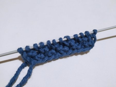 Вяжем третий ряд полностью лицевыми петлями.