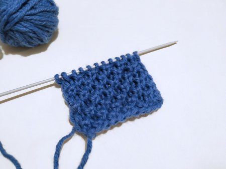 Вяжем первый ряд лицевыми петельками.