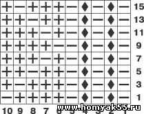 3-й и 15-й ряды: * 1 изн. п., 1 лиц. скр. п., 1 изн. п., 1 лиц. скр. п., 1 изн. п., 3 лиц. п., 1 изн. п., 1 лиц. п. *, повторять от * до *.