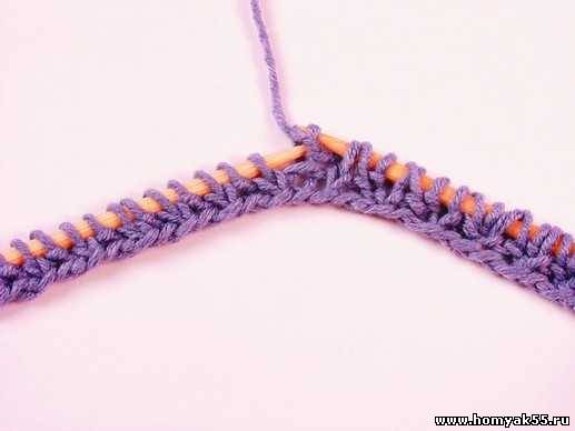В третьем и всех нечетных рядах лицевую петлю провязывайте лицевой.