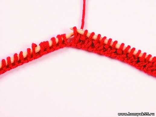 Первый ряд вяжите в такой последовательности: лицевая, изнаночная.