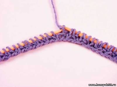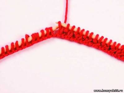 Во втором и всех четных рядах лицевую снимайте вместе с накидом.