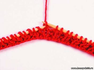 Во втором ряду кромочную петлю снимайте, затем 1 лицевая, 1 накид, 1 изнаночная.