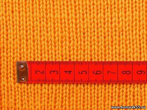 После того как вы подсчитали количество рядов, необходимо узнать количество петель в 10 см. На представленной фотографии в 10 см находится 20 петель. Получив количество петель на 1 см (2 петли), можно сделать соответствующие расчеты. Так, при вязании мужского джемпера сначала обмерьте объем бедер и разделите величину пополам. К примеру, объем составляет 110 см, разделив пополам, получаете 55 см. Это число умножьте на количество петель в 1 см (2 петли). В результате выходит, что для вязания джемпера 50–52-го размера на переднюю половину изделия необходимо набрать 110 петель. Если вязание будет проводиться круговыми спицами, то наберите нужно петли по объему, т.е. 220 петель. Если образец получился слишком рыхлым или слишком плотным, то попробуйте сменить спицы на более тонкие или толстые, в зависимости от желаемого результата.
