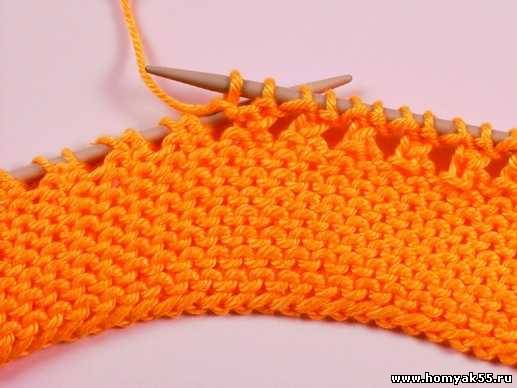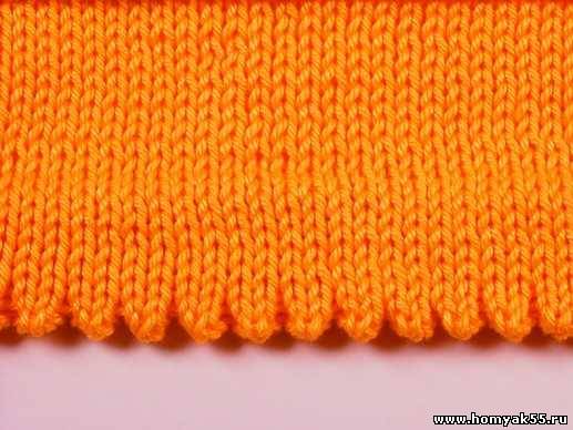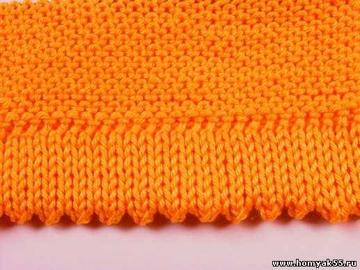 Для выполнения ровного края на спицы наберите определенное количество петель и провяжите семь рядов лицевыми петлями.