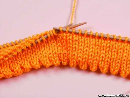 Вспомогательной спицей наберите петли с наборного края.