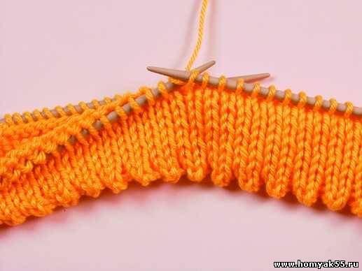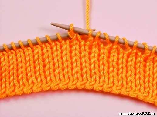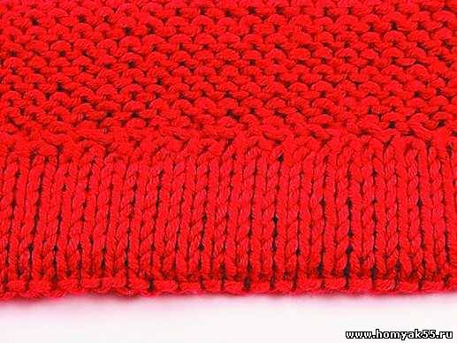 Сначала на спицы наберите необходимое количество петель. Семь рядов провяжите лицевыми петлями.