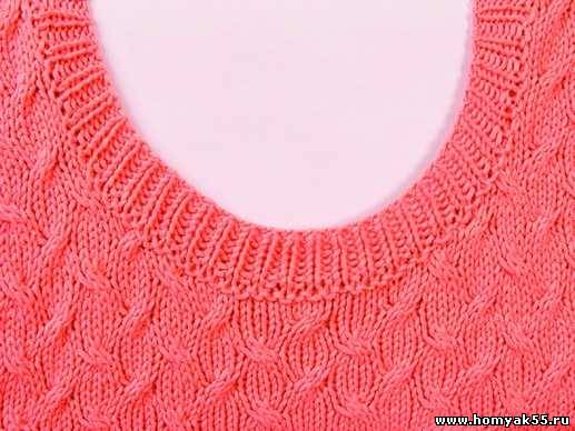Связанная таким образом бейка горловины всегда будет смотреться красиво и аккуратно.
