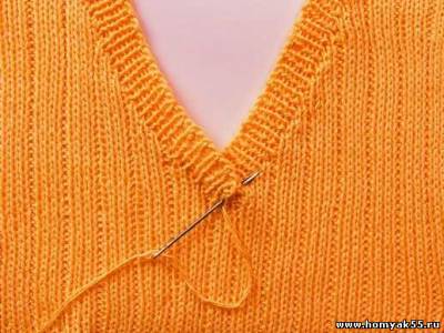 Вязание V-образного выреза со средней петлей