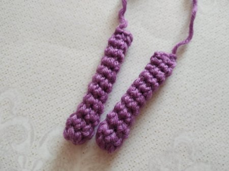 Вяжем ручки. Делаем скользящую петлю, провязываем 6 сбн. Затем 10 рядов вяжем по 6 сбн.